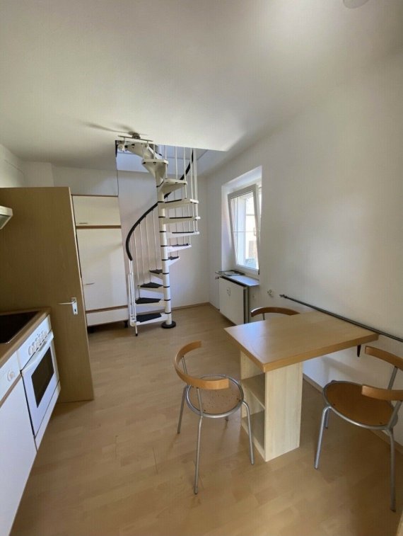 Die helle und geräumige 3 1/2 Zi.-Wohnung mit ca. 95 m² befindet sich im 1. OG/DG. Zu den Räumlichkeiten im DG gelangt man einerseits über eine Wendeltreppe von der Küche im 1. OG und des Weiteren über das Treppenhaus über eine separate Wohnungseingangstüre.