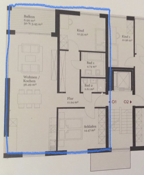 - 2 Bäder, eines mit Wanne, eines mit Dusche