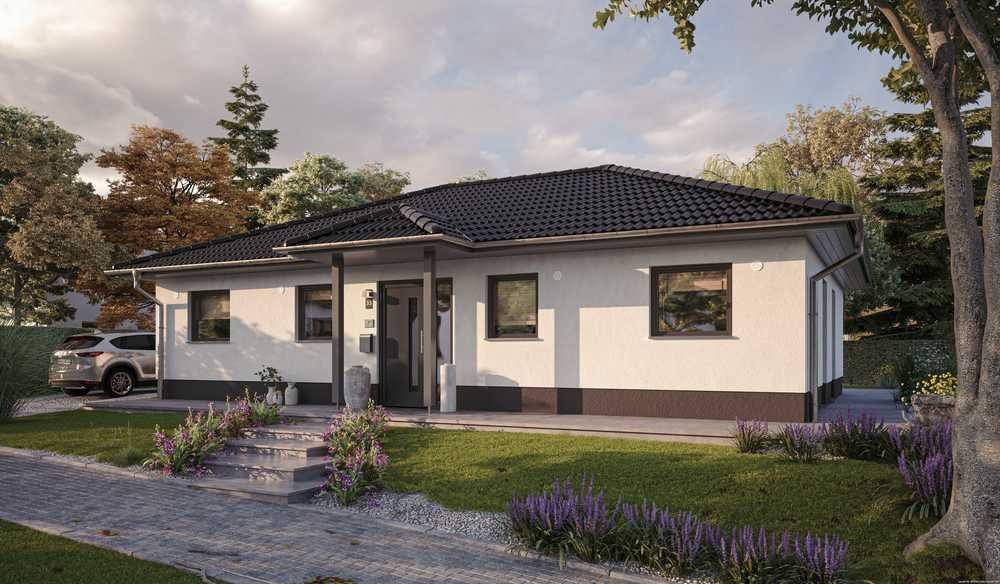 Ob für eine Familie mit zwei Kindern oder als Altersruhesitz, der Bungalow 110 ist in jedem Fall ein ideales Zuhause. Er bietet ein gemütliches Wohnzimmer mit Essbereich, ein geräumiges Schlafzimmer und zwei weitere Zimmer. Alle Räume sind dank großer Fenster hell und freundlich. Mit quasi einem Schritt sind Sie mit Ihren Liebsten im Garten und können die Sommerzeit bei einem Grillabend genießen.