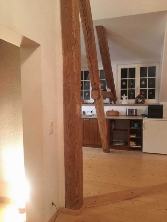 Energieausweis: BAUDENKMAL, ENERGIEAUSWEIS NICHT VORGESCHRIEBEN, Das Haus ist umgeben von einem gepflegten Gartengrundstück, hinter dem Haus befindet sich der ehemalige Burggraben, im Eigentum des Schlosses, mit herrlichem waldähnlichem Baumbestand. Das Haus verfügt über eine eigene Kläranlage, d.h. dass die Abwasserkosten sich nicht nach dem Wasserverbrauch richten, die Kosten für die Aufbereitung und Reinigung des Abwassers ist sehr moderat und die Kosten für den Service belaufen sich auf nur ca. 250 -300 EUR im Jahr. Das Anwesen wurde von uns erworben im Jahr 1995 und ab 1996, nach dem Einzug, wurden umfangreiche Sanierungsarbeiten begonnen, welche sich bis zum letzten Jahr hingezogen haben. Als erstes wurde die elektrische Oberleitung am Haus entfernt und in die Erde verlegt. Dazu wurde ein neuer Zählerkasten installiert und je nach Stand der Sanierung der Innenräume nach und nach alle neuen Leitungen eingesetzt. Danach wurde das Dach vollkommen saniert und als - Harzer Dach - konzipiert und eine Doppelgaube mit weißen Sprossenfenstern eingebaut. Harzer Dach bedeutet, dass das Dach zunächst vollkommen mit Holz verkleidet wurde, erst darauf befindet sich die Lattung für die Aufnahme der Tonziegel. Außerdem wurde der Schornstein ab Dach-Oberkante neu gemauert. Ebenso wurden im ganzen Haus Heizkörper installiert und mit der vorhandenen Erdgas-Brennwertheizung im Nebengebäude des Nachbarhauses verbunden. Ein eigene Heizungsanlage könnte jedoch installiert werden da die Erdgasleitung vorhanden ist. In diesem Fall kann auch ein entsprechender Preisabschlag berechnet werden. Zur Zeit verfügt das Haus über eine DSL 6000 Leitung mit Internet. Für schnelles Internet wurde jedoch bereits der Auftrag an die Firma DNS Net vergeben. Dieser Auftrag wird ein Volumen von 150 Mbit/s bereitstellen. Da der Auftrag fristgemäß abgegeben wurde, entfallen für die Installation keine Kosten. Die Sanierung der Innenräume ist verhältnismäßig neu, teilweise erst in 2017 -2018, sowie der Ausbau des Dachgeschosses ab 2013 -2017. Bis auf ein Fenster in der Küche sind alle Isolierglasfenster aus weiß lackierten Holzfenstern, in Richtung Schlosshof als Sprossenfenster. Das Haus gehört den Denkmalschutz betreffend zum Schlossensemble, die geforderten Vorgaben wurden berücksichtigt und abgenommen, betreffen aber nur wenige äußerliche Gegebenheiten wie die Fenster, Haustüre, Mauerwerk, Dachvorgaben und nicht den Innenausbau. Beim Innenausbau wurden bei ca. 80 qm der Wohnfläche die Wände mit Schleifputz sehr aufwändig verarbeitet, ebenso wurden die alten Holzböden im Erdgeschoß mehrmals geschliffen und versiegelt. Im neu ausgebauten Dachgeschoß wurden neue Holzdielen verlegt, der Fußboden im Dachgeschoß besteht aus 2 Ebenen, der 57qm große Wohnraum mit neuer integrierter Küche, zur Hausrückseite mit 3 Veluxfenstern bietet einen wunderschönen Blick in die Baumkronen. Das gesamte Dachgeschoß wurde aufwändig isoliert, das gute Ergebnis der Dämmung ist im Sommer wie Winter von großem Nutzen. Über dem großen Wohnraum im Dachgeschoß befindet sich noch der nicht ausgebaute Spitzboden, welcher als Abstellfläche genutzt wird, könnte jedoch ebenfalls noch ausgebaut werden. Der Zugang ist von der oberen Diele über eine Treppe zugänglich, die zu einer -kleinen Galerie- ausgebaut wurde. In jeder Etage befindet sich je ein Badezimmer, im Erdgeschoß mit Wanne, im Dachgeschoß als Duschbad. Im Erdgeschoß gibt es eine geräumige Küche und eine große Speisekammer mit Wasseranschluß und Abfluss für die Waschmaschine. ..Anfragen bitte nur über das Kontaktformular. Bitte keine telefonischen Anfragen. Vielen Dank.