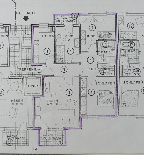 Helle 4-Zimmer Wohnung im Erdgeschoss mit zwei Terrassen.