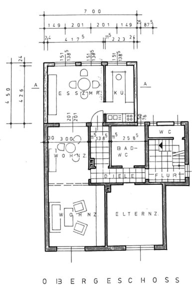 OG: ca. 110 m² , 2-4 ZKDB + Gäste-WC, leerstehend und renovierungsbedürftig. Zum selber einziehen oder vermieten.