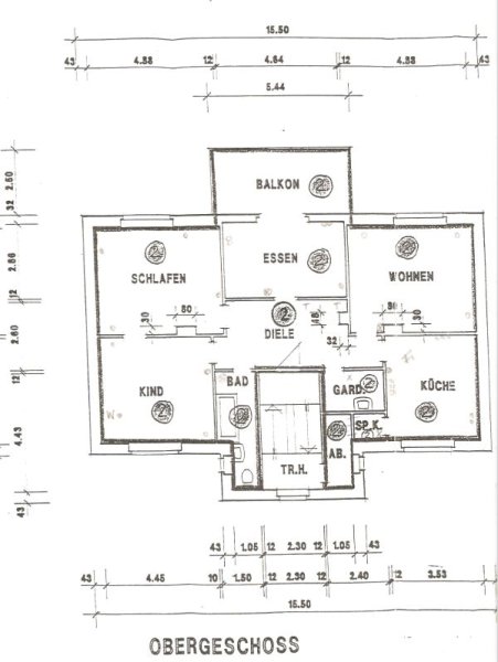 ETW mit 3 großen hellen Räumen und einem kleineren Balkonzimmer, einem schmalen Bad und einer großen Küche (Wohnküche) sowie einer daran angrenzenden Speisekammer mit Fenster, einer großen Diele mit einem Garderoben- oder Abstellraum ohne Fenster