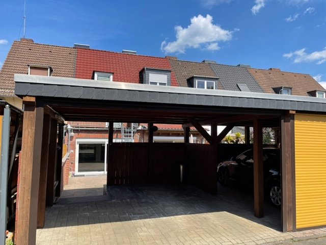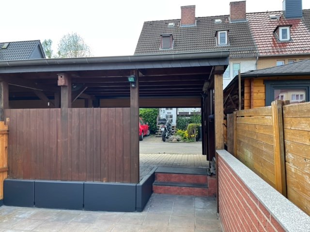 Das Reihenhaus ist 2005 saniert (Elektrik, Zuwasser, Abwasser, Fussbodenheizung EG + 1OG, Einbauküche, 3 Bäder, Fenster, Türen, Kachelofen, Kellerwohnung mit separaten Eingang, Carport geschlossen mit elektrischen Rolltor, 2 Terrassen )