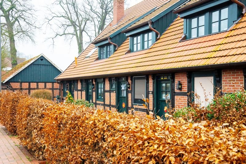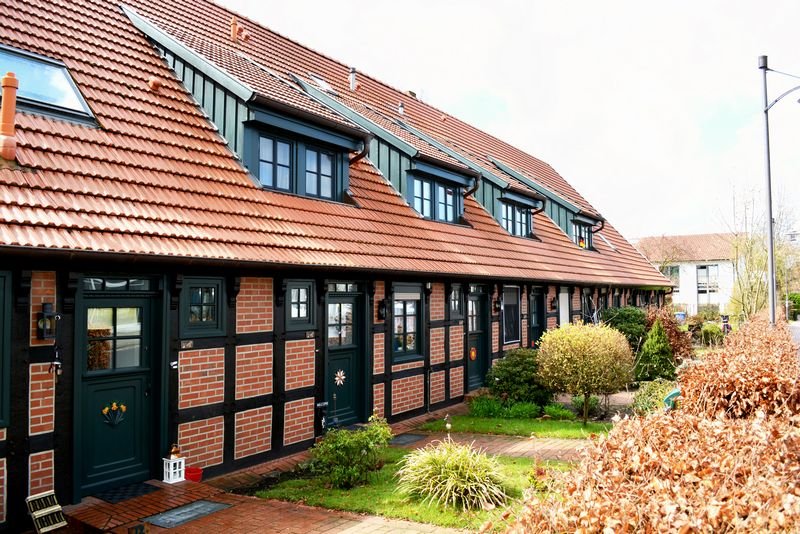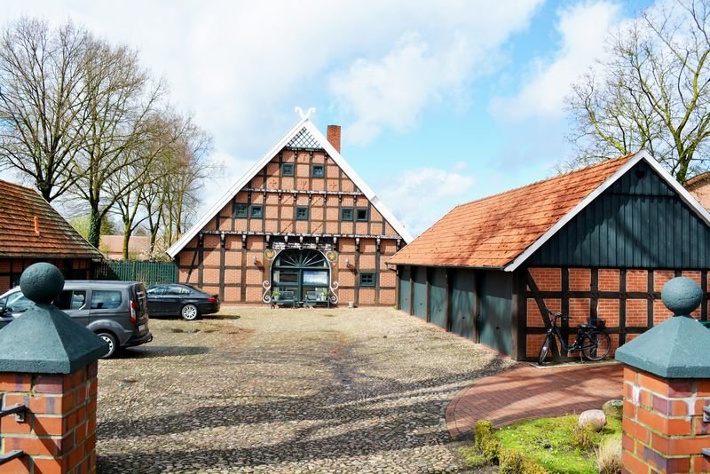 Ideal für Investoren: 8-Parteienhaus mit Nebengebäuden (6 Wohnungen 75-105qm und 2 Apartments ca. 35-50qm) und 7 Garagen zu verkaufen. Geschichtsträchtiges Fachwerkhaus in Ortsmitte (49434 Neuenkirchen-Vörden). Komplett vermietet. Supermärkte, Ärzte usw. innerhalb von 3 Minuten zu Fuß erreichbar. Nachdem es 1948 abgebrannt war, wurde es damals sofort wieder neu aufgebaut und als Hofstelle eines Bauernhauses genutzt. 1990 wurde es als Wohnhaus umgebaut und komplett saniert. Seitdem ist es bei Mietern immer sehr beliebt, denn die Wohnungen sind einem alten Bauern-Fachwerkhaus gerecht gestaltet mit Echtholzparkett und Holztreppen; Holztüren und Holzfenstern mit Thermopenverglasung. Jede Wohnung hat einen eigenen Eingang und einen kleinen Vorgarten. Hinter den jeweiligen Wohnungen sind kleine Gärten angelegt, die die Mieter oft sehr liebevoll gestalten. Die eine Giebelwohnung hat einen großen Garten und einen Kaminanschluss für einen Holzofen. Die andere Giebelwohnung hat einen eingebauten Kachelofen.