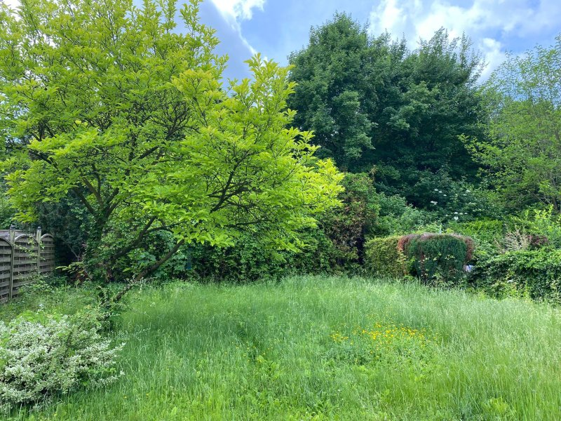 Über den Eingangsbereich, welcher Platz für eine kleine Garderobe bietet, gelangen Sie in einen weiteren kleinen Flur, der die separate Küche, das Wohnzimmer und das WC zugänglich macht. Das Wohnzimmer ist zum Garten ausgerichtet, und an der Nachbarbebauung kann man sich ausmalen, wie auch hier ein Durchbruch zum direkten Garten mit Terrasse aussehen könnte. Das Obergeschoss (1 Stock) erreichen Sie durch eine Holztreppe, die in einer Art Vorderflur mündet und derzeit ein Einbauschrank steh. Die Fenster bieten ausreichend Licht. Nach dem Flur gelangt man nach links in das Tageslicht-Bad, rechts in das Schlafzimmer (ohne Dachschräge) mit Blick auf den Garten und geradeaus in ein weiteres kleines Wohnzimmer (Dachschräge) mit direkt angrenzendem Bürozimmer (Dachschräge). Gern mehr Infos per Mail
