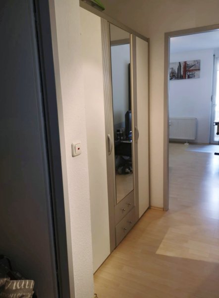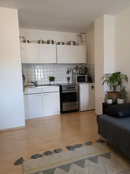 Die helle Wohnung liegt im 1. Stock und verfügt über 27 m2 Wohnfläche mit einem großen Balkon, der Platz für einen Tisch und zwei Stühle bietet, um die Sonne zu genießen. Die Wohnung ist mit Laminat ausgestattet und verfügt über ein Duschbad. Ein Kleiderschrank findet im Flur Platz, die Kochnische befindet sich im Wohnraum.