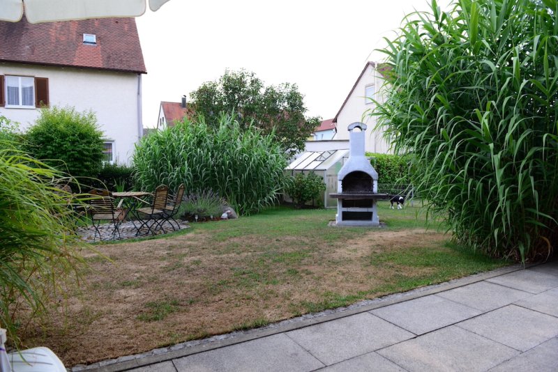 Die Doppelhaushalte verfügt über einen pflegeleicht angelegten Garten mit Teich, Gewächshaus und Gartenhäuschen.