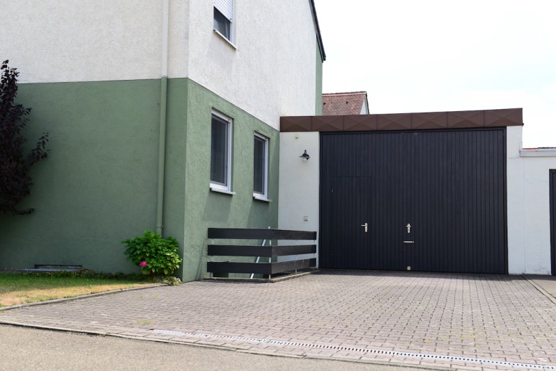 Die Garage wurde nachträglich neu und vergrößert gebaut. Diese verfügt über eine Grube und wurde temporär als Werkstatt genutzt