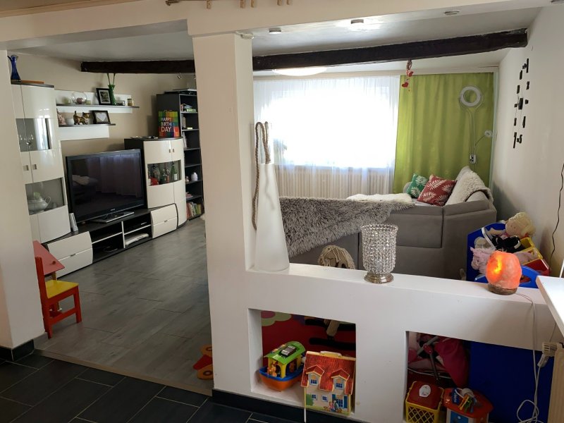 .Gewölbekeller, Garage und Heizungskeller im EG .3 Stockwerkiges Fachwerkhaus Dach Isoliert,und erneuert.fassade vwsd 100 m Dämmung isoliert.Kamin erneuert,Küche EZ, WZ gefliest.SZ Laminatboden montiert.Küche mit Miele/siemens Geräten erneuert..Obere Stockwerk Bad/WC neu gebaut. Küchenische vorbereitet.Dachgeschoss ausgebaut mit begehbarer Kleiderschrank.Für 2 generationen ausreichend Platz vorhanden.
