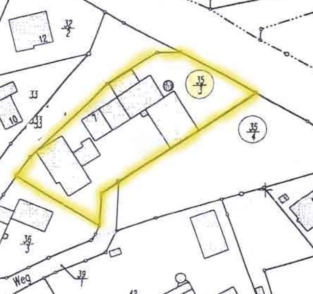 Der ehemalige Fachwerk-Bauernhof steht auf einem ca 2200 qm großen Grundstück und umfasst ein zweistöckiges Wohnhaus, sehr grosser Maschinenhalle, teilweise ausgebaute Scheune und Stallungen (insgesamt ca. 300 qm Wohnfläche und ca. 1000 qm Nutzfläche), Garten und Innenhof (beide sind hundesicher und blickdicht umzäunt).