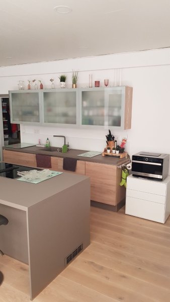 Die Wohnung befindet sich zur Straße hin im 2. Stock und nach hinten zur Grünfläche ebenerdig. Dies ermöglicht auch eine schöne ruhige Terrasse mit Blick aufs Grüne, welche 2020 erst neu gerichtet wurde. Die Wohnung ist offen und hell gestaltet sowie sehr geräumig. Die Wohnung selbst entstand 2000 aus einem Atelier, so dass alle Wasser- und Stromleitungen höchstens aus diesem Jahr stammen. Die Küche, der Flur sowie das Wohnzimmer wurden 2020 komplett renoviert (inkl. neuen Tapeten, Dämmung, Echtholzparkett, Decke und neuen Smartlampen). Die anderen Zimmer sind noch im Stand von 2000 und auch direkt bezugsfertig.