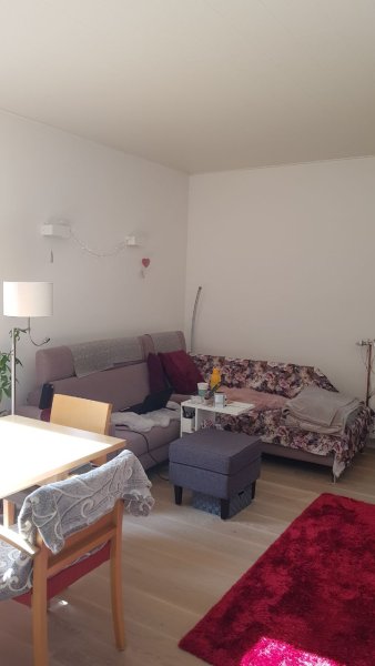 Die Wohnung liegt nach vorne hin zur Straße und nach hinten hin zu einer Grünfläche, wo sich auch ein hausgemeinschaftlicher Garten befindet. Die Nachbarschaft besteht aus netten Familien mit hauptsächlich größeren Kindern und ist sehr sicher.