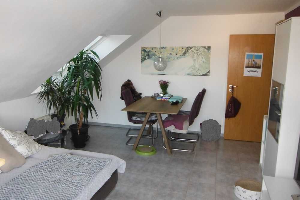 In idyllischer, ruhiger von Natur umgebener Lage befindet sich die 3-Zimmer-Dachgeschoss Wohnung in einem gepflegten Acht-Familienhaus. Die Wohnung verfügt über ein separates WC sowie ein Tageslicht Bad mit Badewanne und Dusche. Genießen Sie ihren Feierabend auf dem nach Osten ausgerichteten Balkon. Zur Wohnung gehört ein Stellplatz in der Tiefgarage und ein Kellerraum. Die darüberliegende Bühne ist ausschließlich der Wohnung zugeordnet. An gemeinschaftlichen Räumen steht ein Wasch- und Trockenraum zur Verfügung.