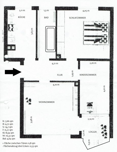 Zur Wohnung gehört ein eigener Außenstellplatz im Innenhof, der mit 10.000,- Euro übernommen werden soll.