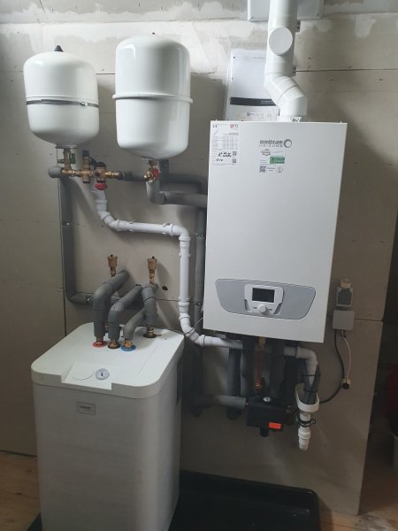 Im Spitzboden befindet sich in einem Raum die neue Gasheizung von Mai 2022 mit Warmwasserboiler ( Brennwertheizung von Brötje ).