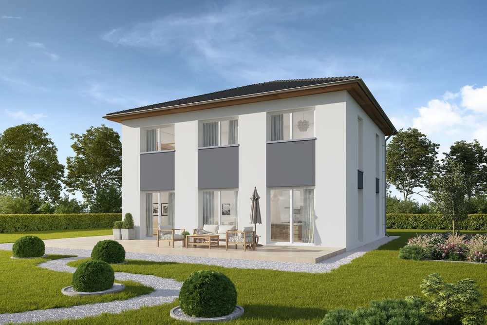 Eine 2-farbige Putzfassade gibt dem Haus ein modernes Design.
