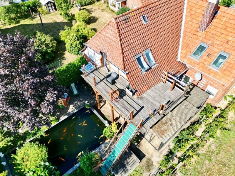 Keine Makler Anfragen erwünscht !! Alles im Leben hat seine Zeit. Für uns wird es Zeit sich zu verkleinern. Die Kinder sind aus dem Haus, die Prioritäten haben sich verändert :-) Wir verlassen unser Haus, welches sich hervorragend für Erwachsene Kinder eignet, die wieder ihre Eltern mit im Haus haben möchten. Die gesamte Wohnfläche erstreckt sich auf 245 m². Die Grundstücksfläche beträgt knappe 600 m². Die EG Whg hat einen großen Flur, ein großes Schlafzimmer, ein Wohnzimmer mit einer abteilbaren Stube, eine Küche ( die EBK ist von 2005 ) , ein Badezimmer, welches saniert werden muss. Optional gehören noch zwei weitere Räume zur Wohnung, in denen wir bisher unsere Papageien gehalten haben. Diese Räume müssten bei Bedarf kernsaniert werden. Ansonsten können die Volieren, die von innen nach außen führen, weiter genutzt werden :-) Über das Wohnzimmer geht es auf eine großen Terrasse, die an einem großen Teich grenzt. Dort tummelten sich die letzten 18 Jahre unsere Koi's. Der jetzige Teich ist etwa 10 Jahre alt. Entsprechende Filteranlagen gehören dazu. Wer seine Fische mitbringen möchte, kommt hier voll auf seine Kosten. Der Teich ( 1,70 m tief ) könnte natürlich in einen Pool umgewandelt werden, oder zur Sicherheit, wenn kleine Kinder mit ins neue Zuhause kommen, zurück gebaut werden. Es gibt zwei Kellerräume. Die andere Whg wurde 2001 komplett neu gebaut. Mehr Beschreibung findet ihr auf ebay :-)