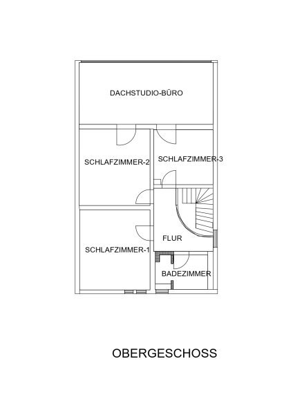 Im Obergeschoß befindet sich in Südlage ein Dachstudio mit 4 m hohe Spitzdecke und Gartenblick.
