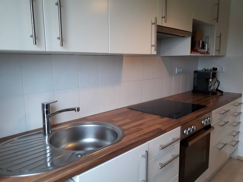 Die Wohnung besteht aus einem Vorraum, einem praktischen Abstellraum, einem Bad mit Wanne, Waschmaschinenanschluss und Fenster, einem hellen Schlafzimmer, einem großzügigen Wohnraum mit Zugang zum Balkon, der derzeit als Loggia gestaltet ist (kann aber geöffnet werden). Die Wohnung wurde 2016 komplett renoviert mit Laminatböden (außer Schlafzimmer) und neuer Badausstattung. Die Einbauküche sowie Teilmöblierung ist im Preis inbegriffen. Alle Fenster haben Rollos.