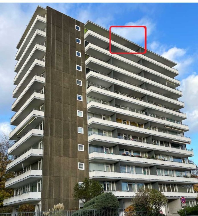Ein Schlafzimmer zählt ebenfalls zu dem luftigen Wohnensemble. Ein Muss für Wohn-Hedonisten, für die verständlicherweise bei dieser Exklusivwohnung nur noch wenig Luft nach oben ist, denn eigentlich kommt dann schon der Himmel! Übrigens: Die Dachwohnung ist barrierefrei zugänglich und durch einen Fahrstuhl gelangen Sie bequem ins 11. Stockwerk. Die letzte Modernisierung fand erst im Jahr 2022 statt. Zum Objekt gehören ein Kellerraum und ein Tiefgaragenstellplatz.