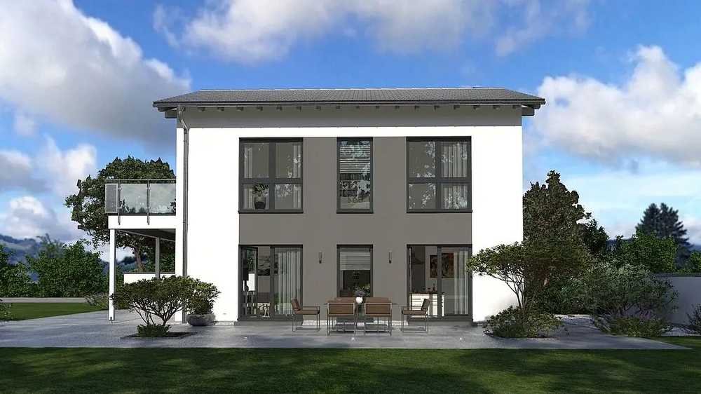 Unsere elegante Stadtvilla mit Pyramidendach besticht durch mediterrane Leichtigkeit und flexible Wohnraumnutzung. Während die Bauherren eine Ebene selbst bewohnen, bietet die zweite Platz für Eltern, erwachsene Kinder und Business. Oder wollen Sie lieber doch vermieten? Das ausgelagerte Treppenhaus macht eine getrennte Nutzung möglich. Beide Etagen garantieren mit 2,80 m Raumhöhe maximalen Komfort und Wohnen der besonderen Art. Die Grundrisse sind gut durchdacht und bis in den letzten Winkel perfektioniert. So wird jeder Quadratmeter optimal genutzt. Für Rundum- Lichteinfall sorgen bodentiefe Fenster.