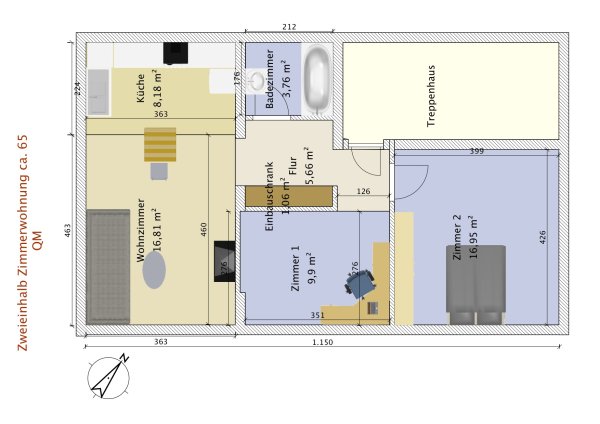 Die Mieteinnahmen betragen 660,- kalt, die monatl. Hausgeldzahlung beträgt 120,-. Ausserdem liegt eine Genehmigung für den Anbau eines 4m Balkons vor.