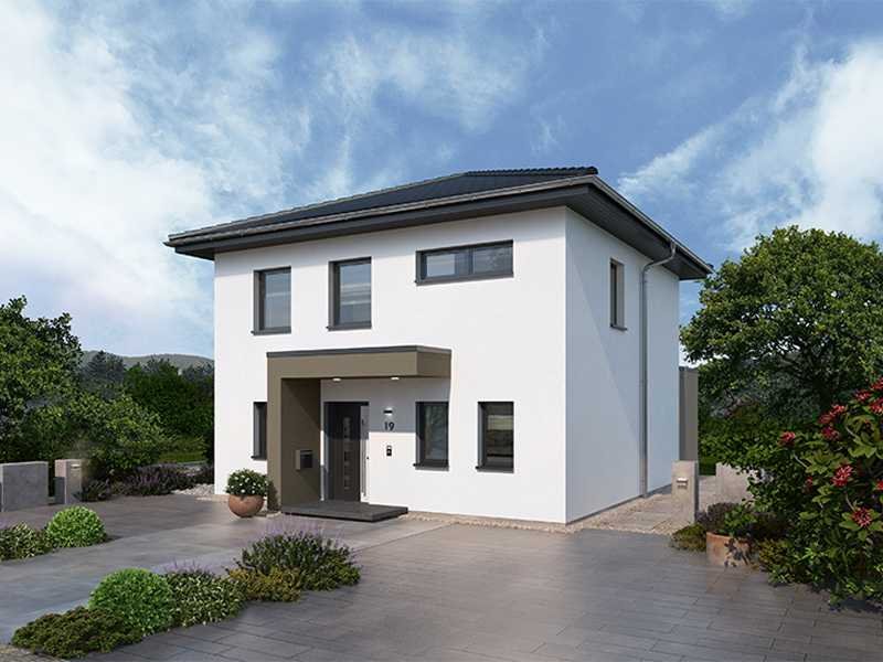 Die Architektur des Hauses ist im klassischen Stadtvillenstil gehalten. Der Grundriss ist klug durchdacht. Im Erdgeschoss befinden sich ein offen gestalteter Wohn-/Ess- und Kochbereich mit einem praktischen Haustechnik-/Hauswirtschaftsraum, direkt neben der Küche. Ein Zusatzraum, der als Homeoffice, Gäste-, Schlaf- oder Hobbyraum genutzt werden kann, bietet zusätzlichen Komfort. Die Diele mit dem Treppenhaus ist mittig angeordnet, neben dem Eingangsbereich ist eine Garderobennische und ein Gäste-/WC eingeplant. Das Gäste-WC kann optional auch als Duschbad ausgebaut werden. Im Obergeschoss des Hausentwurfes befinden sich zwei nahezu gleich große Kinderzimmer, ein geräumiges Familienbad und der Elternschlafbereich mit Ankleide und direktem Zugang zum Bad. Die Nettoraumfläche beträgt 125 m².