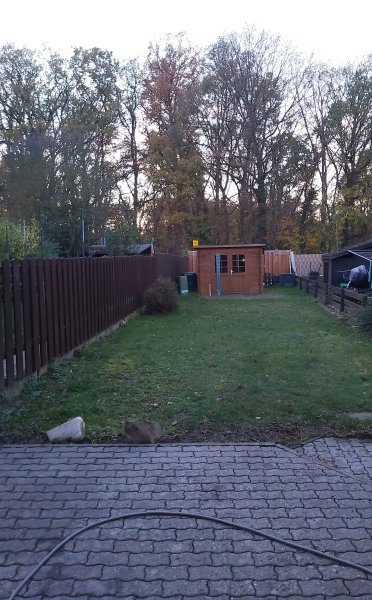 - Rückseitig hoher Holzzaun mit Tor (zwecks Privatsphäre).