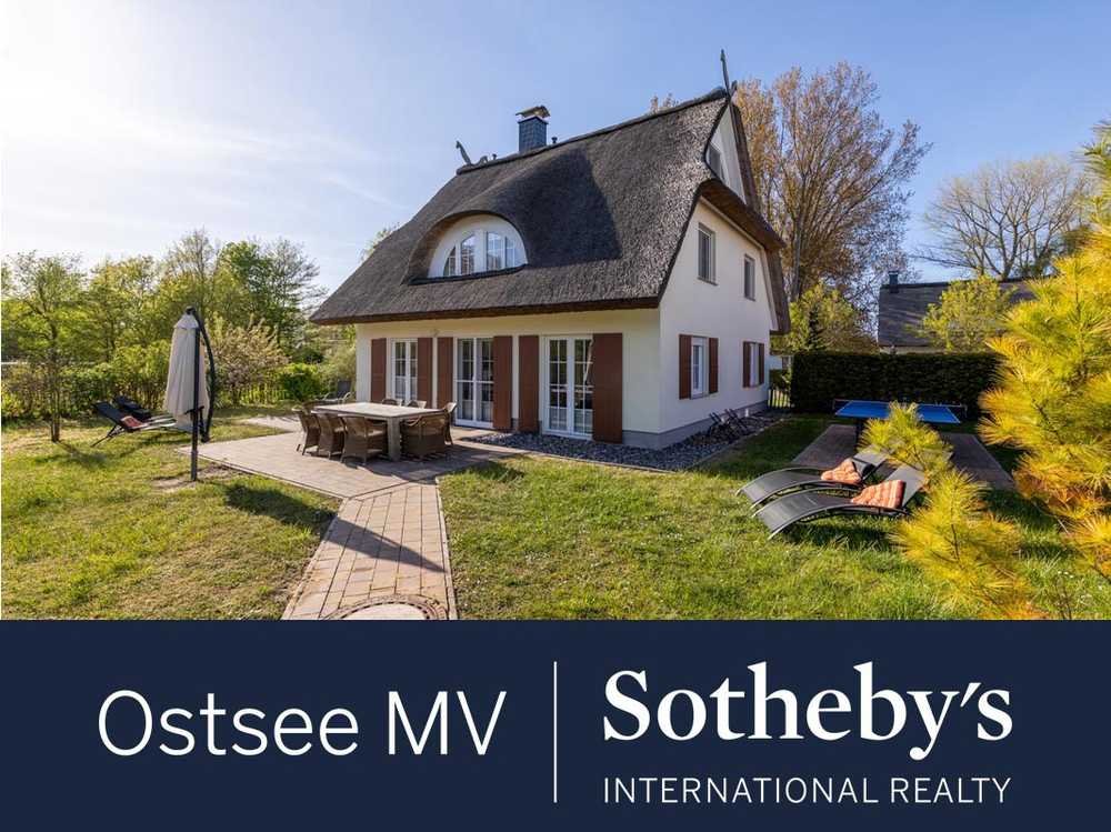 Sie suchen schon lange ein wirklich ein pflegtes nordisches Ferienhaus direkt an der Ostsee, möglichst mit traditionellem Reetdach und Platz für die ganze Familie. Vermietung wäre gut sowie pflegeleichtes, aber nicht zu großes Grundstück in schöner strandnaher Lage? Bitte sehr! Da wäre die Mikrolage im Ort Glowe: Das gemütliche Refugium liegt in einer gepflegten Ferienhausanlage am Waldessaum zwischen Bodden und Ostsee. In wenigen Minuten erreichen Sie den langen und breiten Sandstrand der beliebten Schaabe mit Strandpromenade, Hafen sowie Supermarkt und andere kleine Läden und Cafés mit Restaurants. Das im Jahr 2012 zu Ferienzwecken erbaute massive (Porenbeton) Reetdachhaus mit reizvollen Landhausakzenten ist ein architektonischer Eyecatcher mit klaren praktischen Raumstrukturen und Platz für bis zu 10 Personen. Das pflegeleichte Grundstück in Süd-Westausrichtung ist komplett eingefriedet und gut geeignet auch für Kleinkinder und die Vierbeiner. Im EG versprüht der große und helle Wohn-Essraum mit Kamin und offenen Küchenbereich – das Herzstück und Wohnmittelpunkt des Hauses – sofort entspannte Wohlfühlatmosphäre. Die gepflegte Küche bietet ein sehr umfangreiches Inventar an Haushaltsutensilien, fast wie zu Hause! Der HWR-Raum beherbergt neben der Waschmaschine, Trockner auch eine nachhaltige Luftwärmepumpe und Entkalkungsanlage. Mit der großen Sonnenterrasse und verschiedenen Freisitzen können Sie Ihr Grundstück optimal ausnutzen. Im 1. OG können in 3 Schlafräumen mit Flachbild-TV bis zu ca. 6 Personen übernachten. Das Masterbad bietet neben der Dusche auch eine Badewanne mit Doppelwaschtisch. Den ausgebauten Spitzboden mit Gäste-WC werden Ihre Kinder oder Enkel besonders mögen. Weitere praktische Wohlfühlausstattungsdetails: Fußbodenheizung, große, hochwertige Bodenfliesen in allen Etagen, elektrische Rollläden im EG und DG sowie Fliegengitter. Im anliegenden kleinen Gartenhaus können Sie die Sauna ausprobieren. Das Haus ist erfolgreich in der Ferienvermietung.