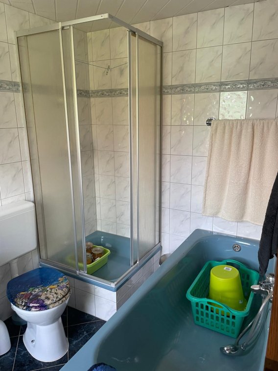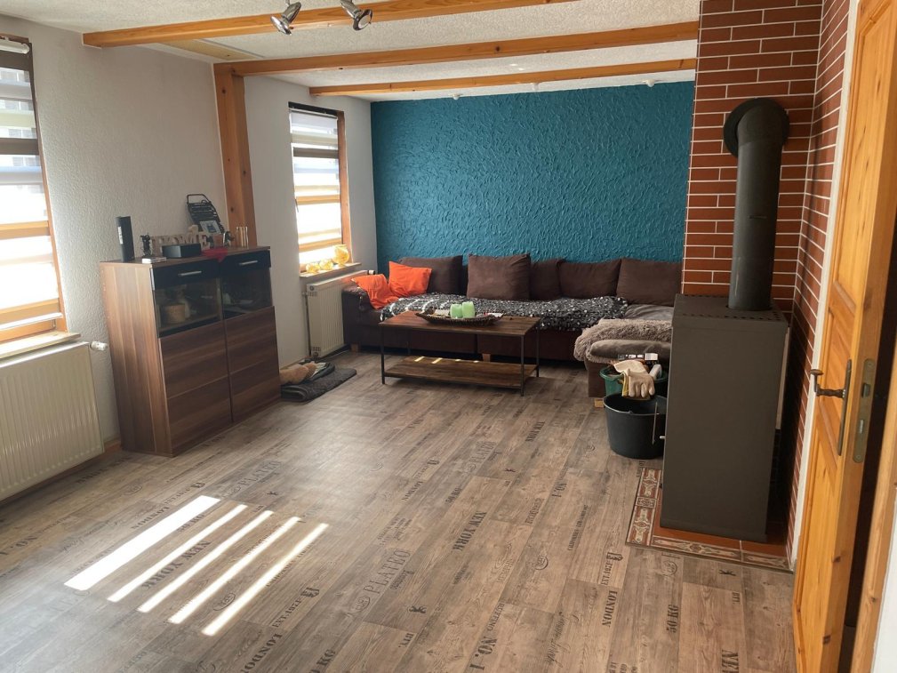 Ruhig gelegenes, familienfreundliches Haus sucht einen neuen Besitzer. Das Haus besitzt 3 Wohnungen mit eigenen Eingängen, können aber falls gewünscht, alle von innen betreten werden. 2 Wohnungen befinden sich in der unteren Etage. Diese sind ausgestattet mit einer Garage, einem Hof, 2 kleinen Gärten, jeweils 2 Räume zum unterstellen diverser Dinge und 2 Wintergärten. Der eine hat einen Kamin und die andere Wohnung hat diesen in dem Wohnzimmer. Die 3. Wohnung befindet sich in der 2. Etage und erstreckt sich über das komplette Gebäude. Diese hat eine separate Küche, Wohnzimmer, Schlafzimmer, Flur, Bad mit Badewanne und 2 kleinen Dachböden. Diese Wohnung müsste nach eigenem Geschmack umgestaltet/renoviert werden werden. Die kleinere Wohnung im Erdgeschoss ist komplett renoviert auf modernem Standart und besitzt sogar ein Gäste WC. Die Größere ist auch modern eingerichtet und hat einen guten Standart. Das Baujahr ist nur geschätzt, sowie die qm, da mir Unterlagen leider nicht vorliegen. Gerne kann ich auf Anfrage weitere Bilder zur Verfügung stellen. Das Bild der Küche der unteren, größeren Wohnung fehlt in diesem Inserat.