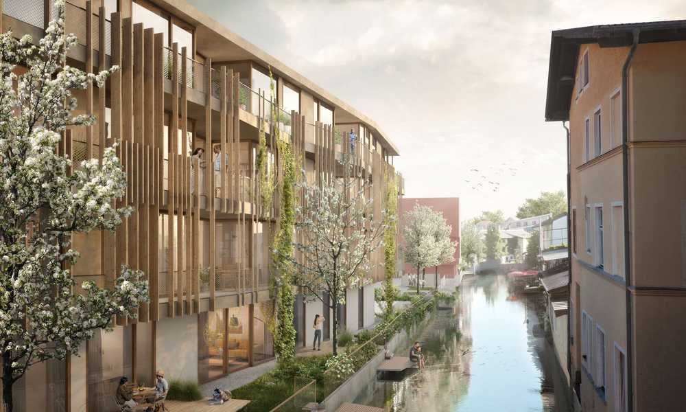 Ein Grundstück direkt am Wasser gelegen und doch mitten in der Stadt – eine so erstklassige Lage verdient eine Bebauung, die sich abhebt. Und das wortwörtlich. Deshalb haben wir mit WOHNEN AM MÜHLBACH einmal mehr kreuz und quer gedacht und ein Wohngebäude entworfen, das sich an der Expertise und Schönheit der Natur orientiert. Ein Haus gleich einem »fliegenden Vogelnest«.