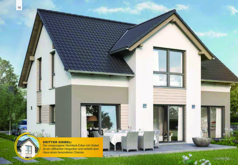 Drei Kinderzimmer, der offene Koch-, Wohn- und Essbereich sowie ein großzügiges Familienbad schaffen die idealen Voraussetzungen für den lebhaften Familienalltag. Besonderer Hingucker: die Galerie, welche zum Spielen, Treffen und Lesen einlädt. Durch den vorgezogenen Rechteck-Erker – durch einen dritten Giebel besonders betont – wird der Wohnund Essbereich optisch gegliedert. Verwirklichen Sie Ihren eigenen Stil. Büdenbender plant und baut Ihr individuelles Fertighaus exakt so, wie Sie es sich vorstellen.