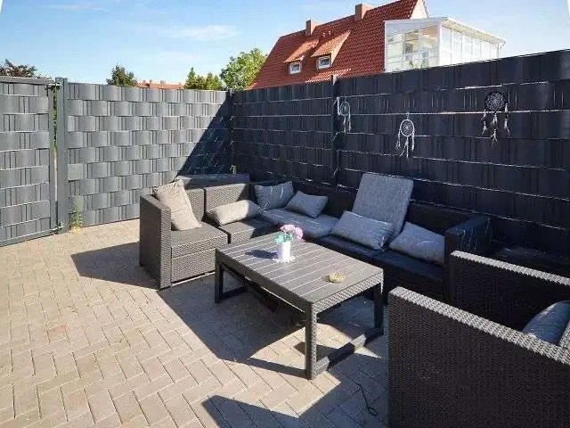 Die Terrasse lädt zum verweilen ein und bietet einen Blick auf den kleinen aber feinen Garten.