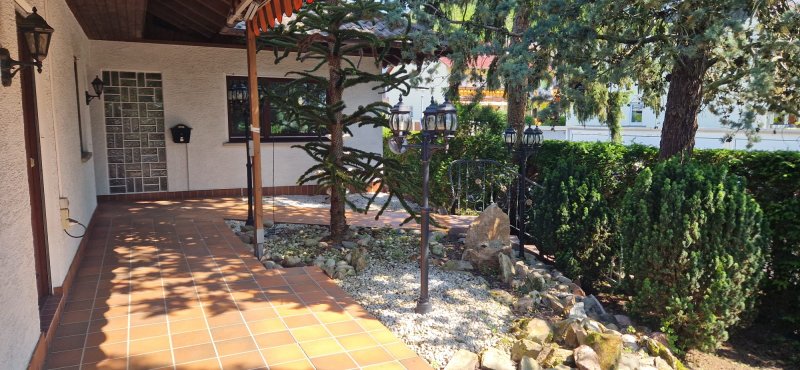 Das freistehende Einfamilienhaus (Bungalow) steht in ruhiger Wohnlage auf einem Sonneneckgrundstück in Laudenbach mit 509 m² und mit einer großen Garage.