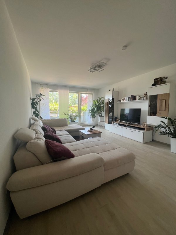 Ihre neue Eigentumswohnung verfügt über ein großes, helles Wohnzimmer mit einer großen Fensterfront und Zugang zu einem Ihrer beiden Balkone.