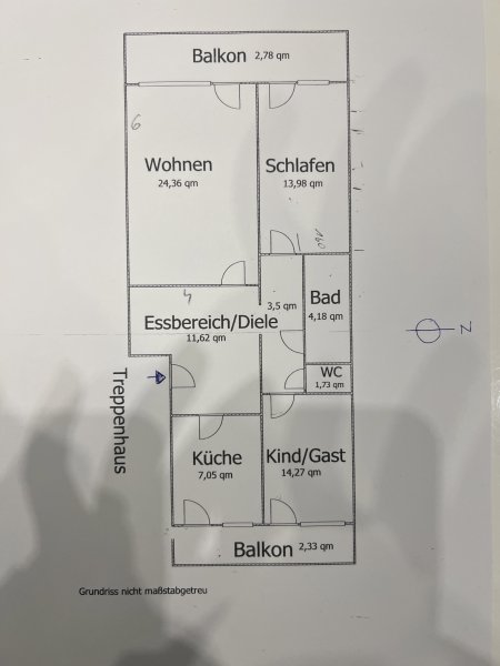 Balkon1 = 2,78 qm / Balkon2 = 2,33 qm