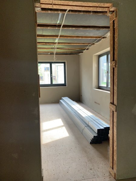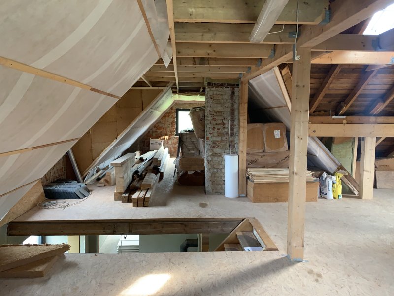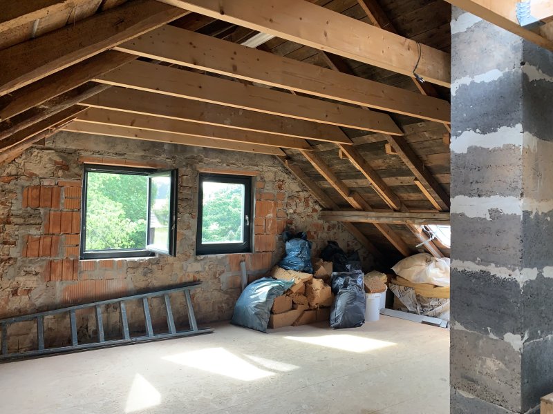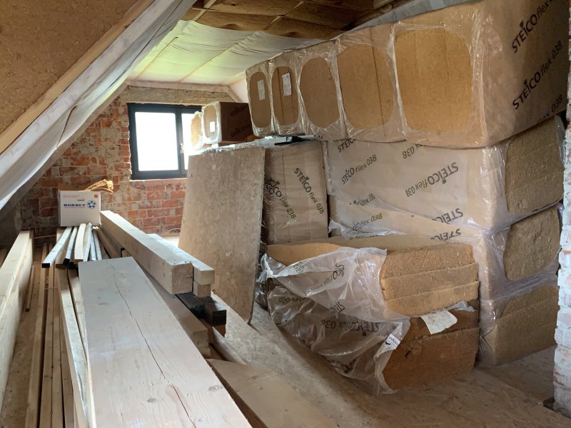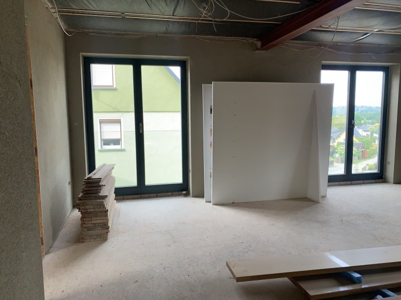 Noch vorhandene Baumaterialien verbleiben im Haus.