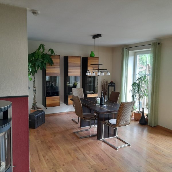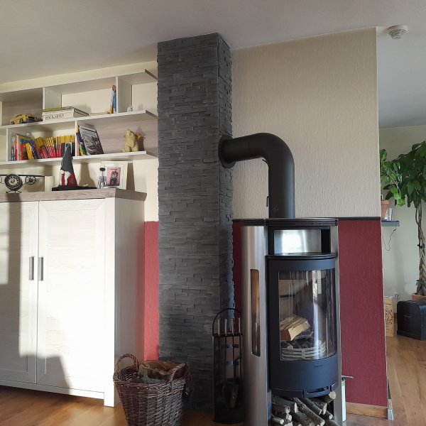 Der vorhandene Kaminofen unterstützt die Luftwärmepumpe vor allem in den Übergangs- sowie in den Wintermonaten.