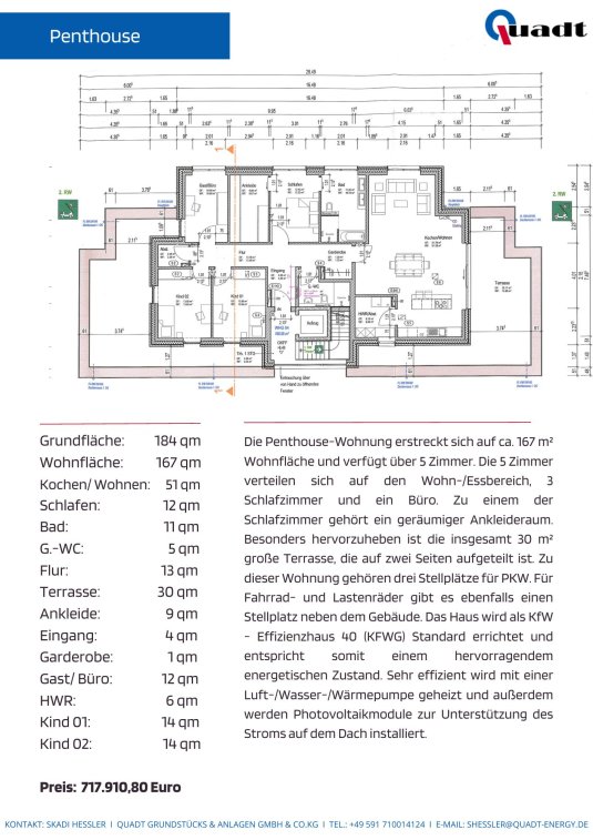 In dieser Anzeige handelt es sich um den Verkauf der Wohnung 4 die über 167m² verfügt. Den Grundriss finden Sie in den Bildern des Exposés.