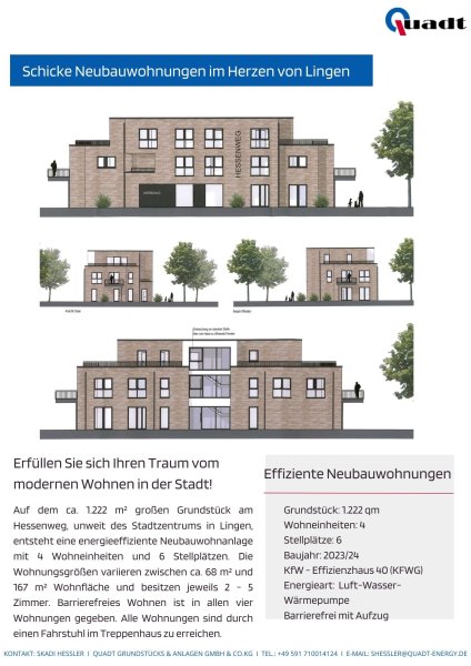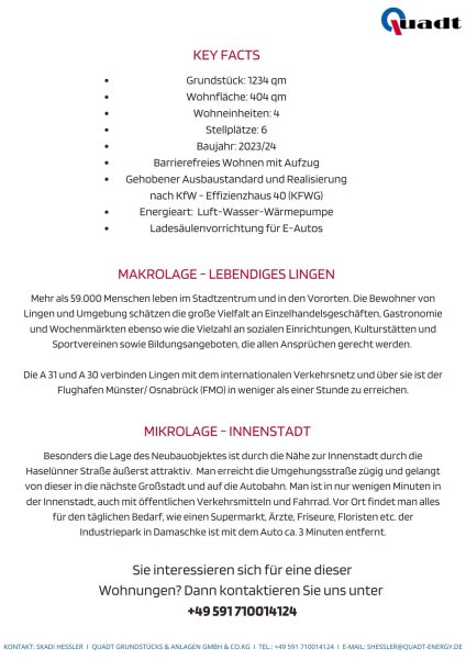 In einer beliebten Lage von Lingen (EMS) entstehen ab sofort schicke und hochwertige Neubauwohnungen in einer schönen Anlage mit insgesamt 5 Parteien. Inmitten von Lingen (EMS) mit sehr guter infrastruktureller Anbindung können Sie sich hier Ihren Wohntraum verwirklichen.