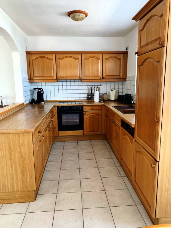 Ausstattung: Begehbare Dusche, hochwertige Bodenfliesen, Fussbodenheizung, Doppelte Verglassung von Fenstern und Türen, Rundbögen im spanischen Stil, schöne Holz-Einbauküsche mit Backofen und Ceranfeld Kockplatte.
