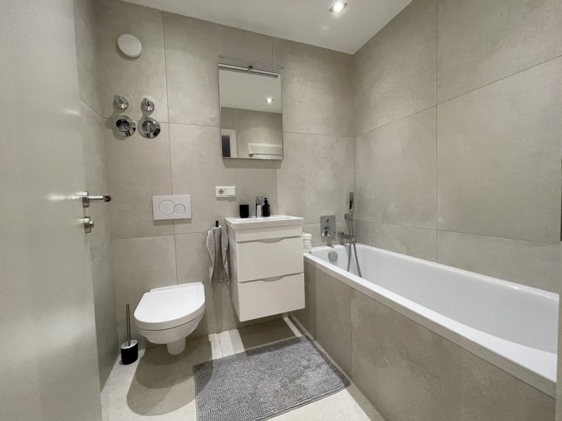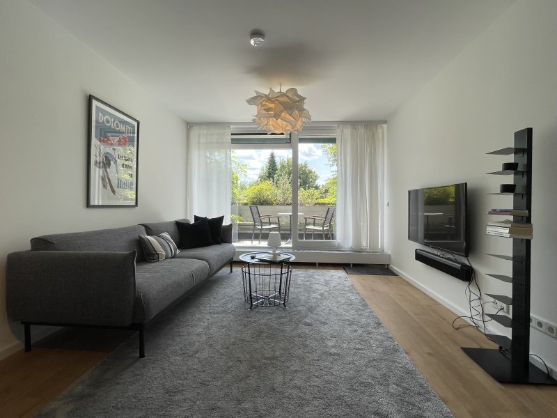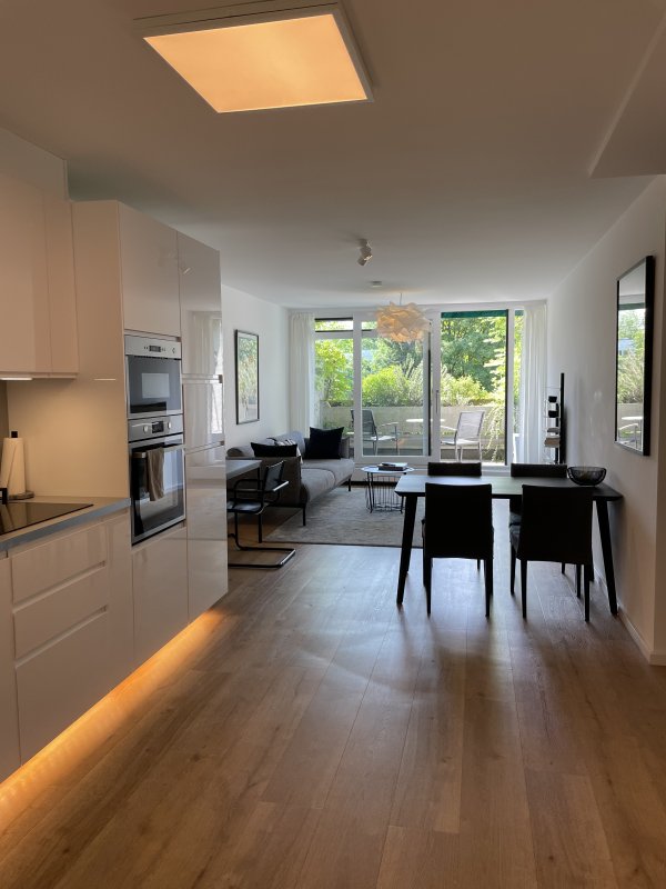 Die ruhige und helle Wohnung ist kernsaniert mit 2 modernen Bädern, Wanne und Regendusche, Waschmaschine, 2 Toiletten, 2 Südterrassen, offene EBK, 2 Schlafzimmer (groß und klein)