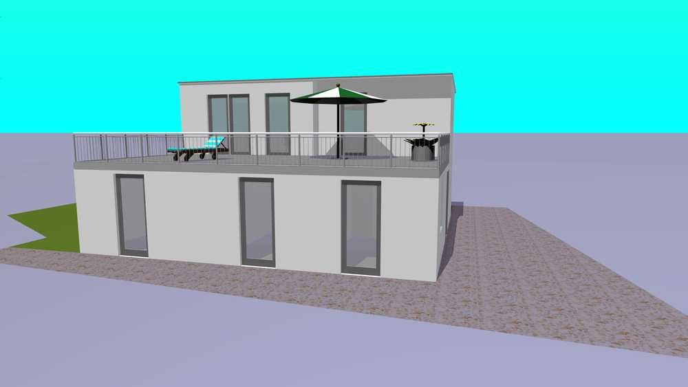 Wenn Sie Platz für die Familie, Ihre Hobbys oder für Ihre Gäste benötigen - hier können Sie Ihre Wünsche realisieren. Im Obergeschoss ist der offene und helle Wohnbereich untergebracht, auf der direkt angrenzenden großen Dachterrasse genießen Sie die Sonne und den weiten Blick ins Umland.