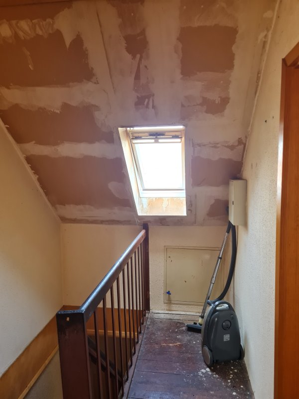 Im EG (Eingangsbereich) befindet sich eine Veranda. Von dieser kommt man in den Flur, von dem man aus alle Zimmer erreichen kann. Das Bad ist ausgestattet mit einem WC, einem Waschbecken und einer Badewanne. Das Bad ist voll gefliest. Die Decke ist ausgestattet mit weißen Panelen. Die Küche hat einen gefliesten Boden. Die decke ist auch hier mit weißen Panelen verziert. Eine weiß-graue Einbauküche ist vorhanden. Das Wohnzimmer ist offen gehalten mit anschließendem Esszimmer. Dieses kann nach belieben mit einer Wand wieder verschlossen werden. Die Böden sind mit Laminat ausgestattet. Auch hier findet man in beiden Zimmern Panele an den Decken. Im Obergeschoss befindet sich ein weiteres Bad, 2 Schlafzimmer, sowie ein Wirtschaftsraum. Das Bad ist ausgestattet mit einem Waschbecken, einem WC und einer Dusche, welches voll gefliest ist. Der Wirtschaftsraum ist auch komplett gefliest und verfügt über einen Anschluss für eine Waschmaschine. Die beiden Schlafzimmer sind ausgestattet mit Holzdielen.