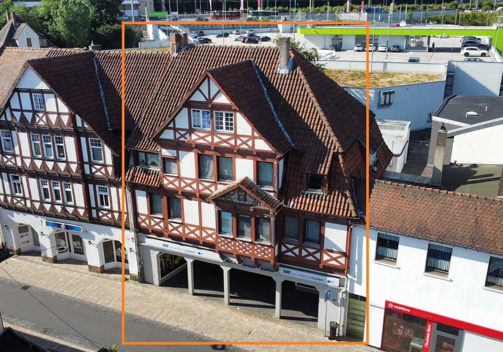 Dieses 1912 erbaute Wohn- und Geschäftshaus bietet Ihnen im Erdgeschoss eine Ladenfläche mit Abstellraum auf rund 230m² mit 28 m² überdachtem Außenbereich. Die im 1. Obergeschoss befindliche Wohnung hat eine Wohnfläche von rd. 108m² und bietet Ihnen eine Küche, ein lichtdurchflutetes Wohnzimmer mit Ausgang zur teilüberdachten Dachterrasse, ein Badezimmer mit Wanne aus den 60er Jahren, zwei Schlafzimmer, ein Büro sowie einen separaten Abstellraum. Das 2. Obergeschoss gliedert sich in eine Küche, ein Badezimmer aus den 70er Jahren und 3,5 weitere Zimmer auf, von denen eines als Sozialraum mit separatem Zugang für den Laden dient. Ein Außenstellplatz für Ihren PKW steht Ihnen ebenfalls hinter dem Innenhof zur Verfügung. Die Jahresnettomiete beträgt zzt. rd. 24.000,-€ und ist steigerbar.