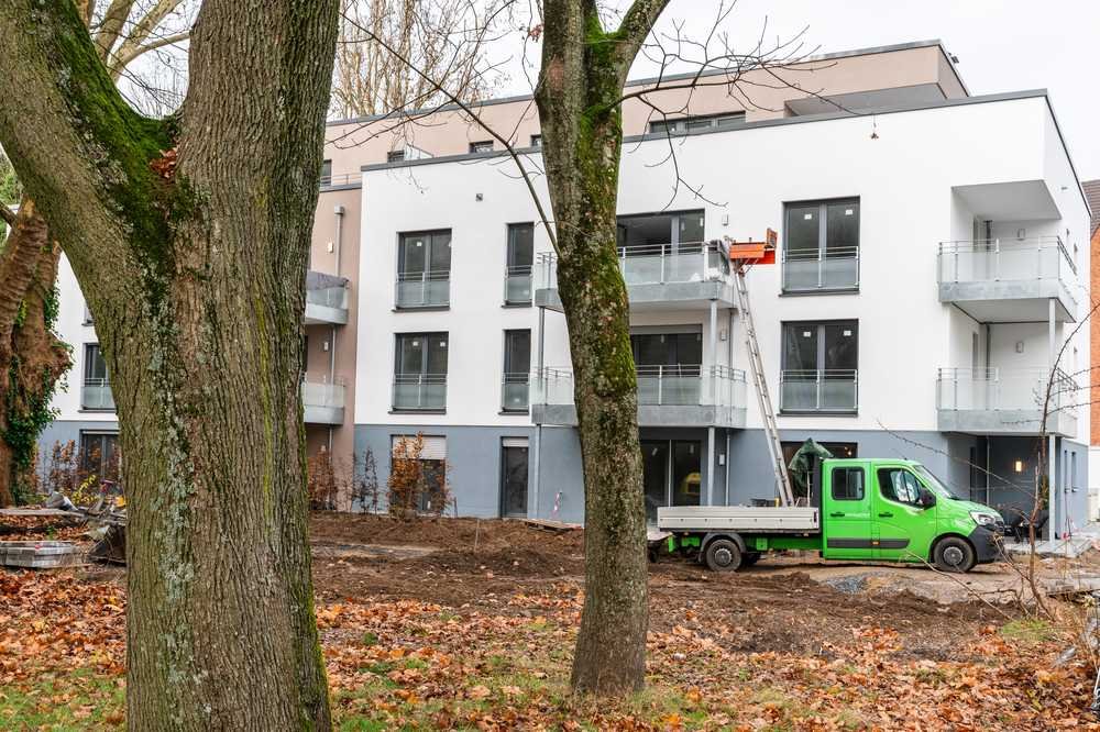 In Düsseldorf-Wersten, direkt neben der denkmalgeschützten Kirche St. Maria Rosenkranz und Ihrem Pfarrhaus, baut die Aachener Siedlungs- und Wohnungsgesellschaft ein Mehrfamilienhaus mit 14 Eigentumswohnungen, davon zwei Penthouse-Wohnungen im Staffelgeschoss.