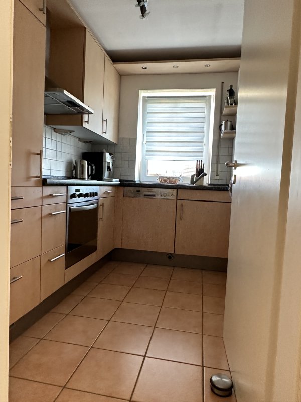 Kellerabteil, TG-Stellpatz, Abstellkammer, hochwertige Fliesen in Diele und Küche, heller Laminatboden in den übrigen Räumen, bodentiefe Fenster außer in Küche und Bad. Badausstattung: hochwertige Armaturen, Kermi-Duschkabine. Weiße Türen und Zargen. Markengeräte in der Küche mit Geschirrspüler, Backofen mit Ceran-Kochfeld, Dunstesse mit Außenabzug, Kühlschrank etc.