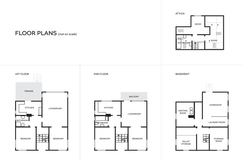 * Zusätzlich bietet der Dachboden zwei kleinere Räume, eine Miniküche und ein Badezimmer.