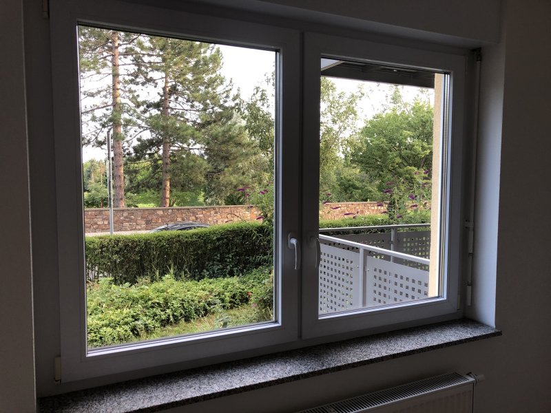 Diese Wohnung hat einen großen Südbalkon. Die Türen sind breit genug und auf Schweller wurde verzichtet.